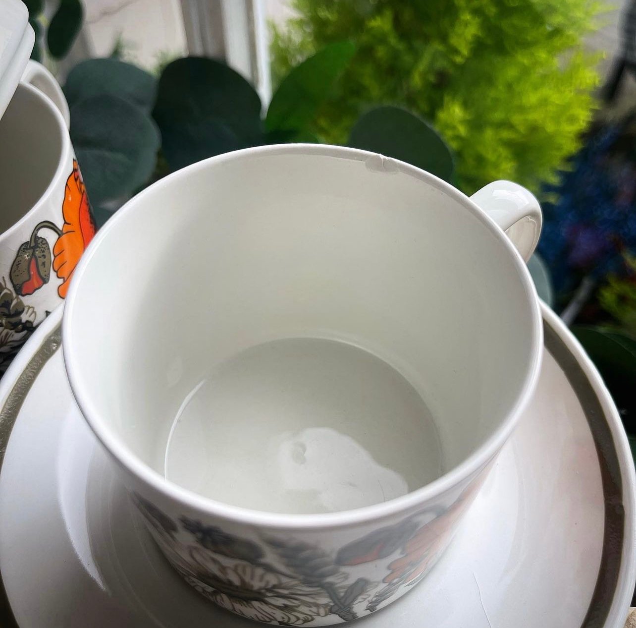 Mid century ‘Poppies’ design set of 4 tea cups and saucers.